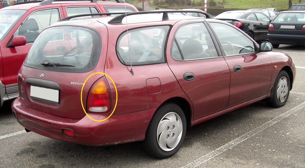HYUNDAI LANTRA J2 – 8/1995 to 7/2000 – 4DR WAGON – RIGHT SIDE TAIL LIGHT- HMC 92402-299 (SMALL CRACK IN LENS)